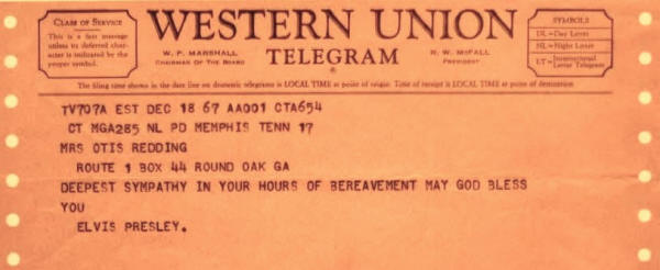 télégrammes envoyés à la famille Redding au lendemain de la disparition d'Otis